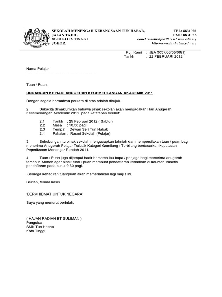 Ucapan sempena hari anugerah sekolah. 19 November 2014 72 Hari. 18 Contoh Surat Jemputan Hari Anugerah Kecemerlangan Pictures.